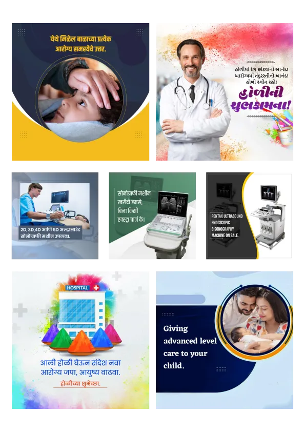 Let us help you with advertising posters for more than 40+ different sub-industries like Maternity Hospital, General Surgeons, Child Care Treatment, Cardiac Hospitals, Eye Hospital, Rehab Centre, Homoeopathy, Pathology Labs and ECG. Using innovative Flyers, Images, Videos, and Templates Advertise your business sector. Grab the opportunity now!